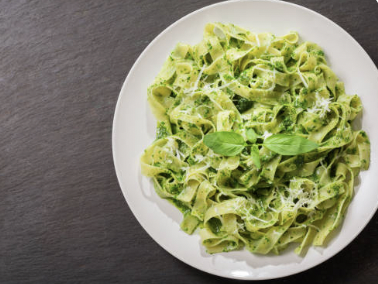 - Toss the cooked pasta in the green sauce and top with extra parmesan! Cool for 5 minutes before serving. Plate and bon appetit!